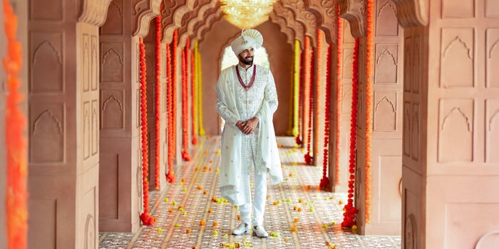 This wedding line by Devo has been thoughtfully designed to cater to every moment of the celebration. The collection boasts of regal sherwanis created for the groom, Indo-western styles made for the lively sangeet nights, and well-tailored Jodhpuri suits lending sophistication to the groom’s squad. For the reception, Devo offers a refined line of formal suits that balance elegance with comfort, while the kurta-pyjama sets for mehndi and haldi bring colour and ease to daytime festivities.